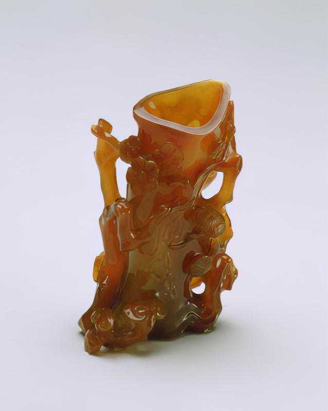 玛瑙树桩形花插,清,高10.1cm,宽7cm。