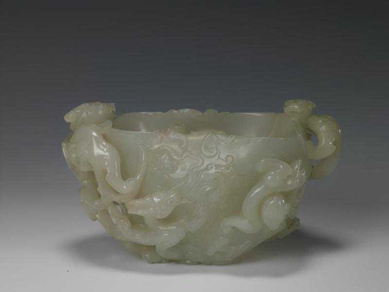 这是曾支持阿睦尔撒纳叛清的小和卓霍集占在支持阿睦尔撒纳叛乱失败后,遣使贡进的第一件痕都斯坦玉器。这也就是清代具有阿拉伯艺术风格的玉器首次进入内廷。平息回部大小和卓木的叛乱,扫清了和阗玉进入中原的障碍,大量新疆玉开始进入宫廷,这为皇家玉器工艺的发展提供了材料基础。乾隆帝喜欢痕玉玉器,在宫内设置有专门的痕玉作坊。
