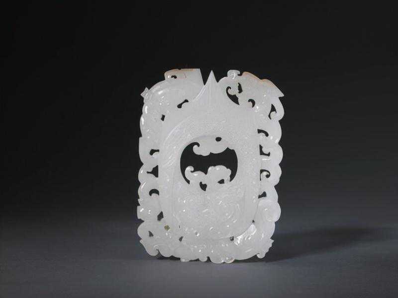 白玉十二辰圆形佩——卯,清,高8.6cm,厚0.7cm,圆径6.6cm。