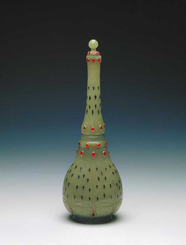 痕都斯坦碧玉嵌石瓶,清,通盖高20.1cm,口径1.7cm,足径4.5cm。