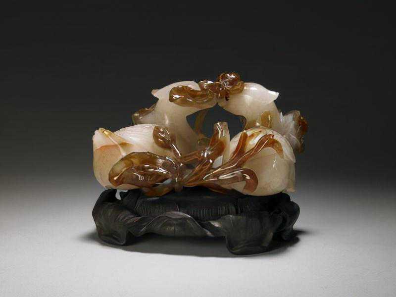 玛瑙卧莲鸳鸯,清,高8.5cm,长15.2cm,宽10.7cm。