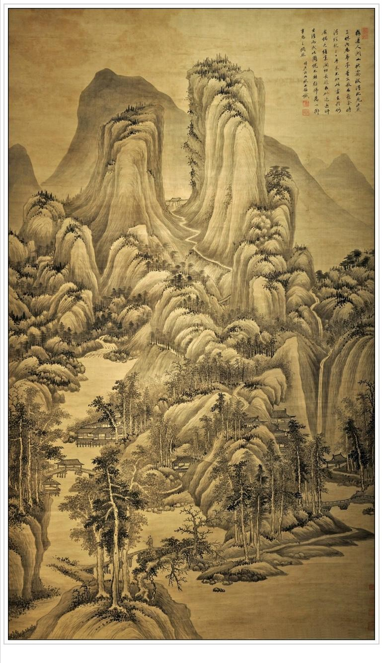 清朝早期王鉴《仿范宽山水图》绢本设色206.9现藏于北京故宫博物院