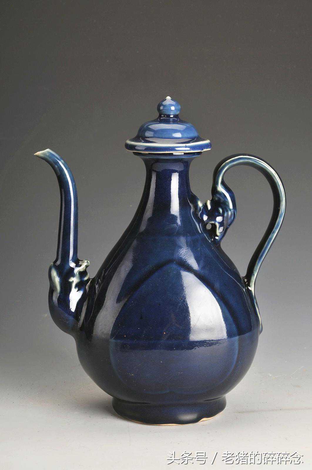 图二:明霁蓝釉描金鸡心执壶