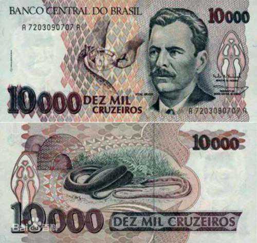 在上世纪90年代初,拥有一张克鲁塞罗,就是万元户,一个万元户的价值现在约为0.113美分。如果说美联储的信用很低,100年来美元购买力下降了九成以上,那巴西央行的金库中根本就没有信用这个名词。