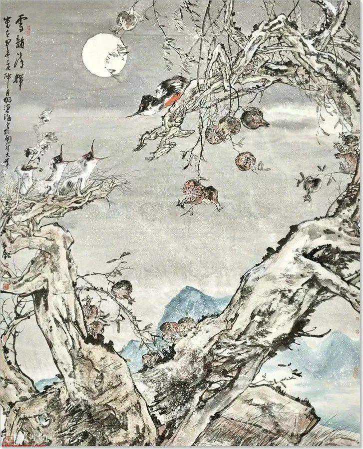 北洋女子师范学堂成为中国早期开办美术教育的院校之一,教员苏吉亨、李鹤筹均为著名的花鸟画家,可见花鸟画于此即已引入学院教育之中。自北洋女师,直至20世纪50年代河北师范学院美术系,再到1980年正式命名“天津美术学院”,中国画专业始终是这所学院的重要学术支撑。而以孙其峰先生为代表,由李鹤筹、张其翼、溥佐、萧朗等当代花鸟画大家,共同构建的花鸟画教学体系无疑是天美中国画最具特色的专业。天津美术学院花鸟画教学,体系完备、薪火相传,为天津乃至全国花鸟画坛连绵不断地输送花鸟画创作人才,对中国花鸟画的当代创作产生了深远的影响。天美之外,工艺美术学院穆仲芹、李昆璞,文人画家梁崎,也均以其独特的花鸟画风,艺海传灯,惠及后学。在新的历史时期,天津花鸟画既成就了如霍春阳、韩文来、贾宝珉、阮克敏、郭书仁、史如源、王之海、刘文生、贾广健等诸多花鸟画大家、名家,尤为可喜者,在学院教学体系的培养下,天津青年花鸟画创作人才辈出,成就不凡,老、中、青几代人共同谱就了沽水之泮的无边春色。