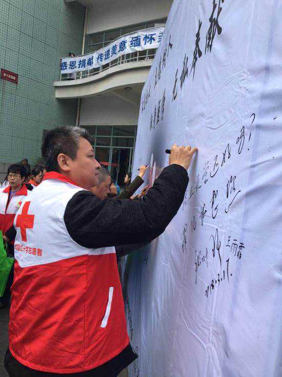 志愿者们纷纷签名表示百年之后捐献自己的遗体(器官)。