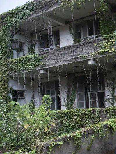 他带我们走到陶瓷研究所的金水制作车间,这里依然保存着当面的模样,前后两排楼都长满了杂草,后排的楼几乎被爬山虎吞噬。上楼的楼梯是水泥砌的,上面铺着红釉色的方块瓷砖,楼梯很宽阔,直通二楼的金水制作室。