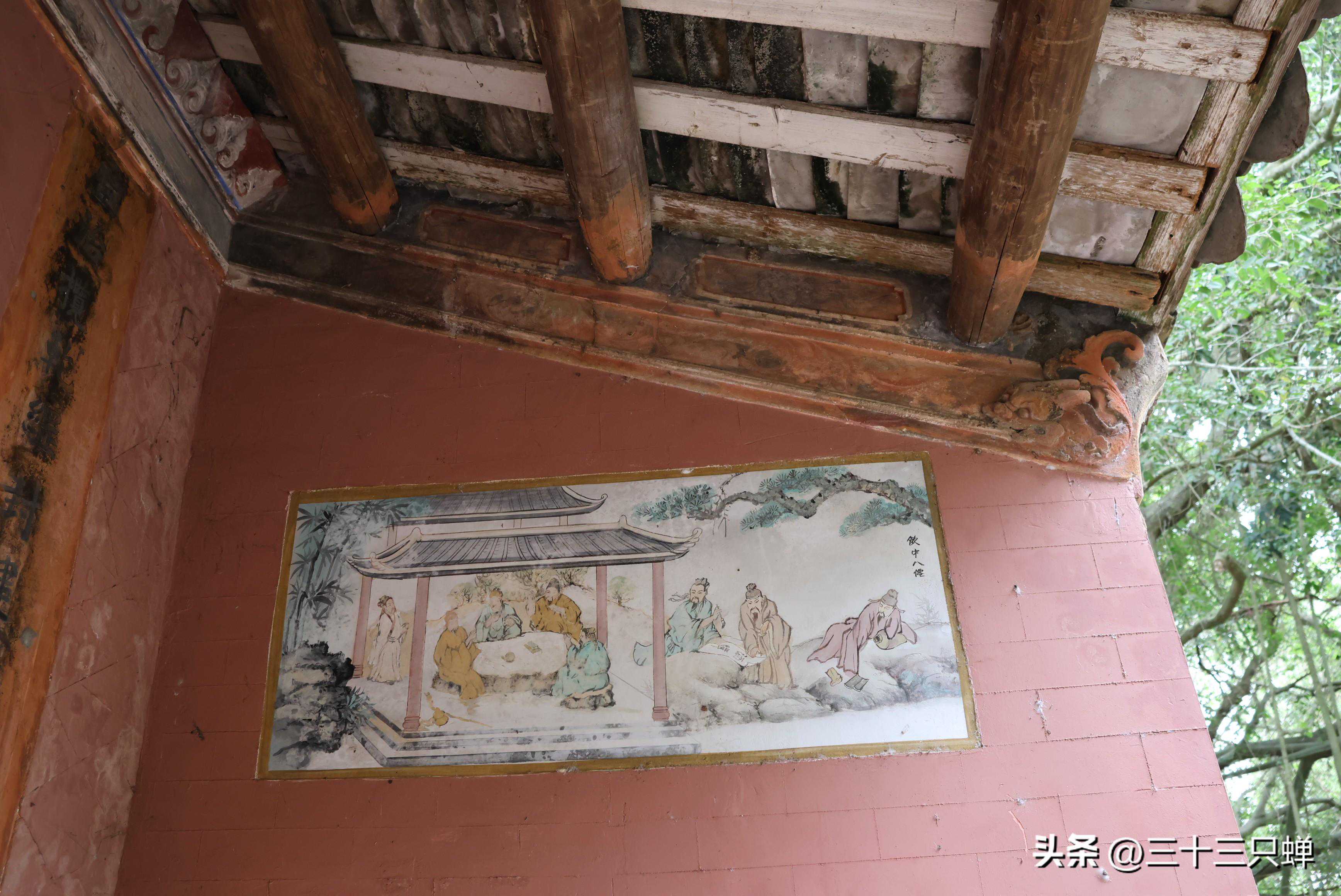 门庭两边照壁上面绘有“竹林七贤”、“饮中八仙”壁画。饮中八仙,指唐朝嗜酒好道的八位文人,亦称酒中八仙、醉八仙。《新唐书·李白传》载,李白、贺知章、李适之、汝阳王李琎、崔宗之、苏晋、张旭、焦遂为“酒中八仙人”。竹林七贤指的是三国魏正始年间,嵇康、阮籍、山涛、向秀、刘伶、王戎、阮咸七人,先有七贤之称。