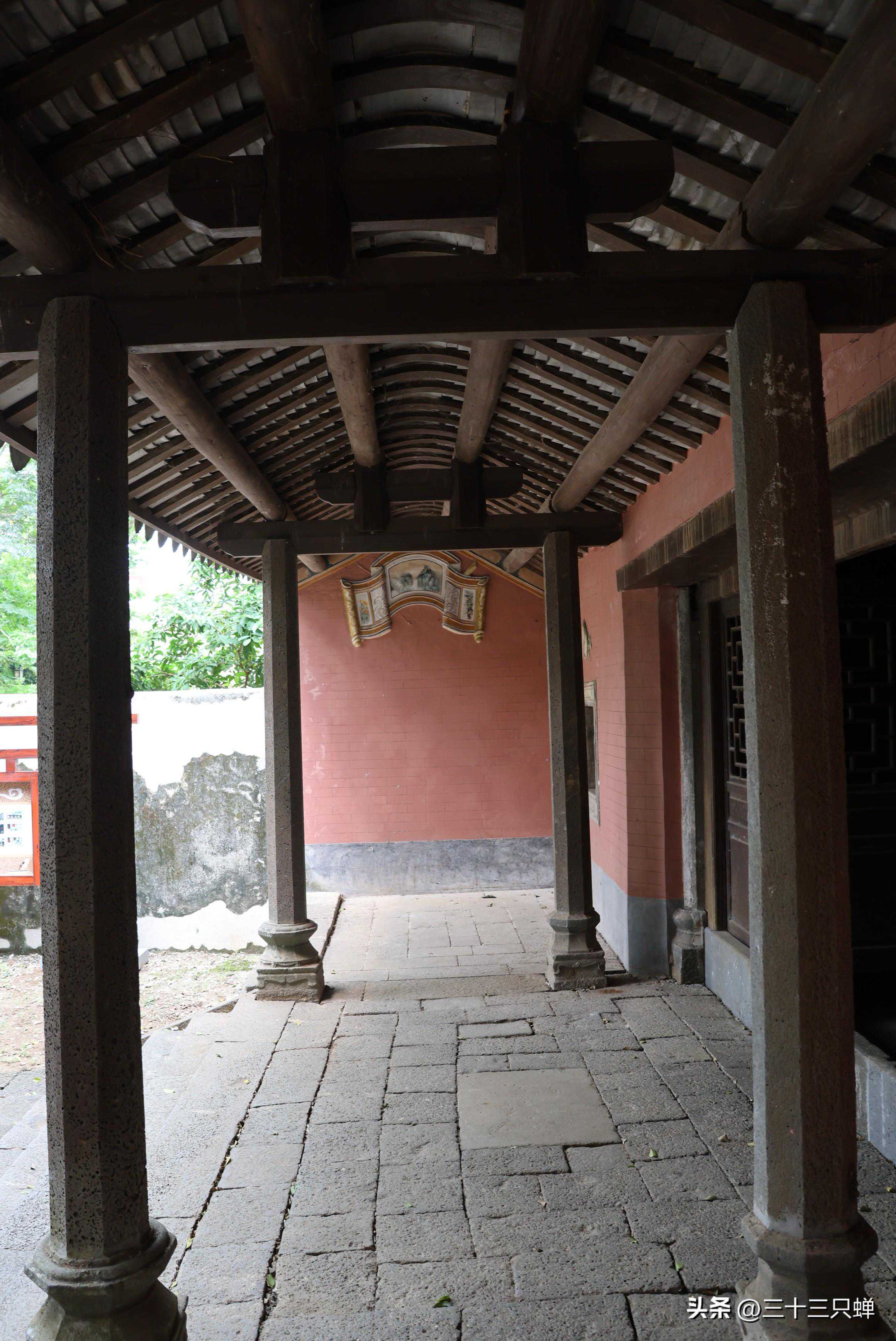 步入柱廊前面有五级台阶,寓意九五之尊,步步高升之意。台阶前面的柱头为仰莲花瓣,寓意清廉正洁。柱廊柱础为八边形,寓意有八面玲珑、四通八达,神气十足有八面威风之意。柱廊,称为宣讲亭,官员在这里宣读圣谕,柱廊中间平整的长方形石,为官员宣读圣谕时所站位置。该约亭缺少拜墀(拜亭)建筑,官员及百姓聆听圣谕、上谕只能跪拜在庭院通道地面铺的石材上面,这个地方有一块方正且平整的石头,是为拜墀石。