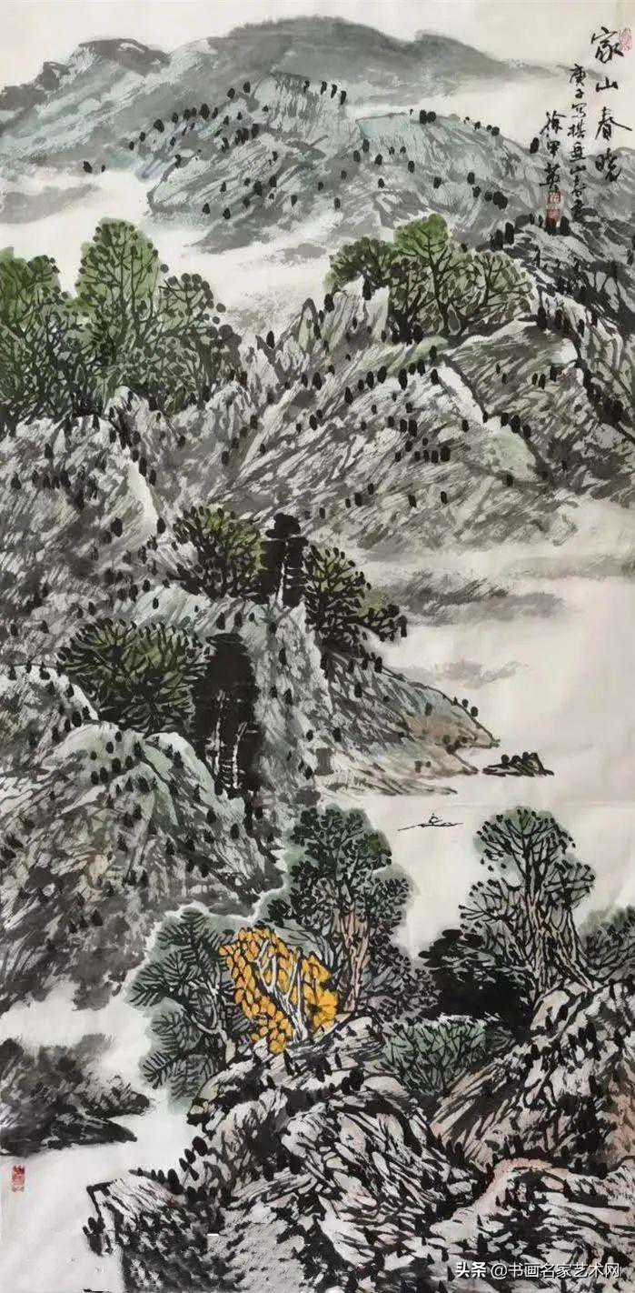徐甲英的笔墨让人感到既有法度又有变化,既有根基又有趣味,呈现出一种令人赏心悦目的中和之美。他打破传统山水画的皴法程式,将原来单一性的固定皴法程式,改变为综合性的皴擦点染融会贯通,交替使用的绘画方式,极大地提升了笔墨的表现力,加强了作品的抒情性和写意性,同时也使得其作品中具有一种若隐若现的现代意味,开创了徐甲英自家式的辽南地域特色的山水画。