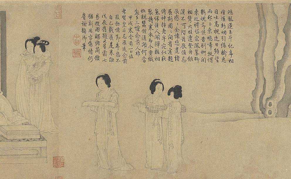 在三八妇女节来临之际,澎湃新闻·古代艺术()特此梳理北京故宫博物院与台北故宫博物馆历代书画中的“她”,以飧读者。