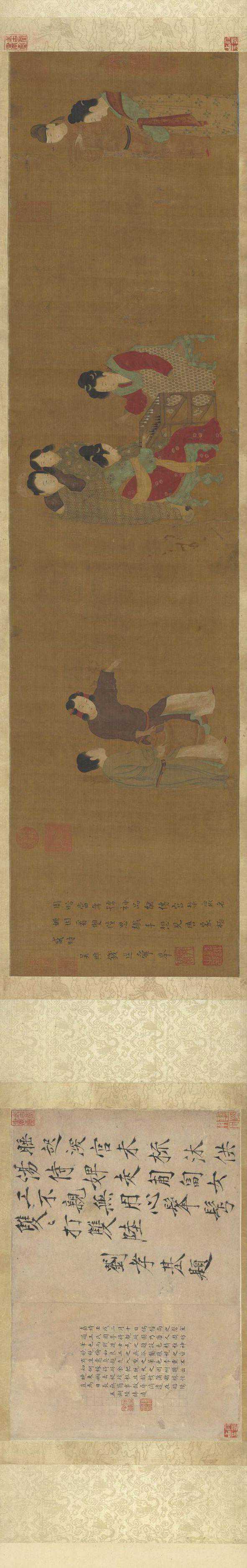 本幅虽然旧标为元人(1279-1368)的作品,但从仕女形象,及衣纹线条的特质来推断,应当是明代中期以后,受到杜菫(活动于1465-1509间)、唐寅(1470-1523)等人所影响的画家所作。
