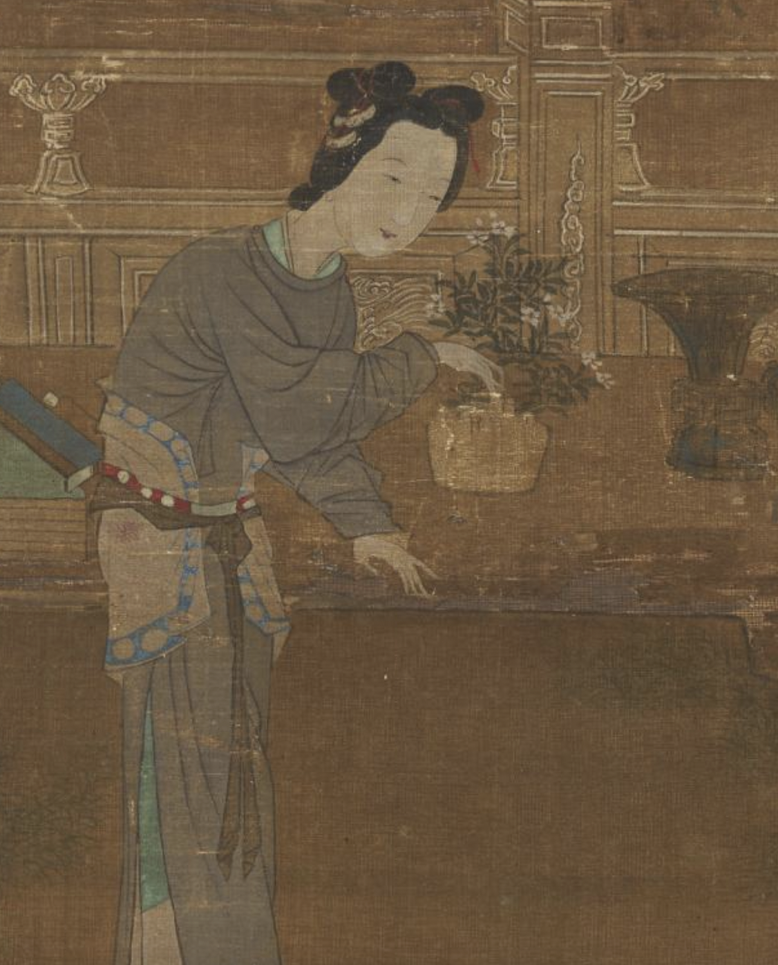 (传)五代南唐周文矩《仕女图》轴(局部)台北故宫博物院藏