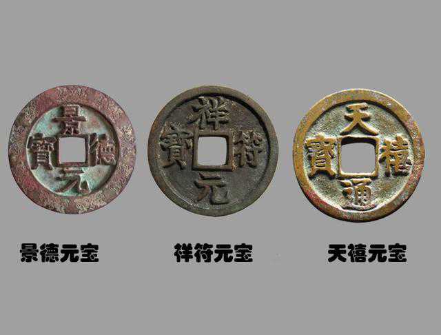 真宗赵恒在位期间所用年号还有"景德"、"大中祥符"、"天禧"、"乾兴"。根据大宋改年号便铸钱的习惯,其在位期间还铸造发行了"景德元宝"(1004年)、"祥符元宝"(1008年)、"天禧通宝"(1017年)。