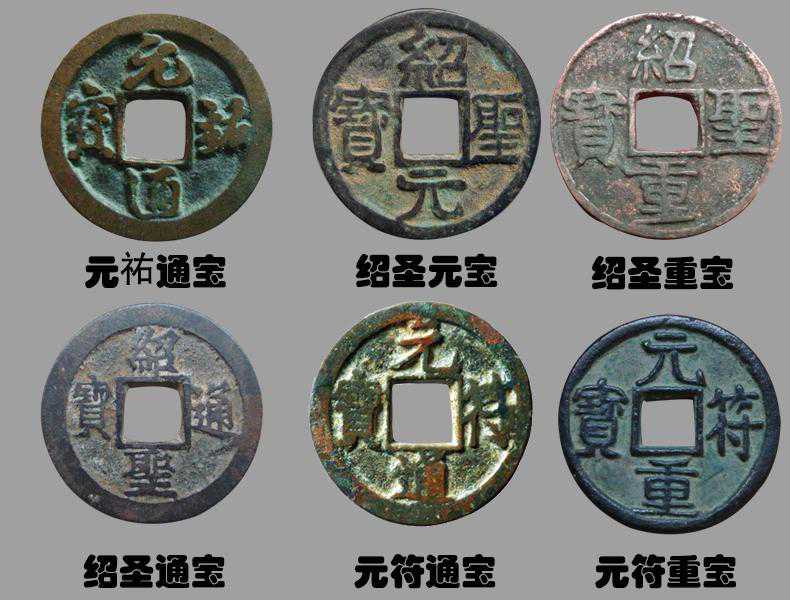 公元1085年,赵煦称帝,1086年,改元"元祐",发行"元祐通宝"。宋哲宗在位期间发行的钱币还有"绍圣元宝(重宝、通宝,1094年)"、"元符通宝(重宝,1098年)"。