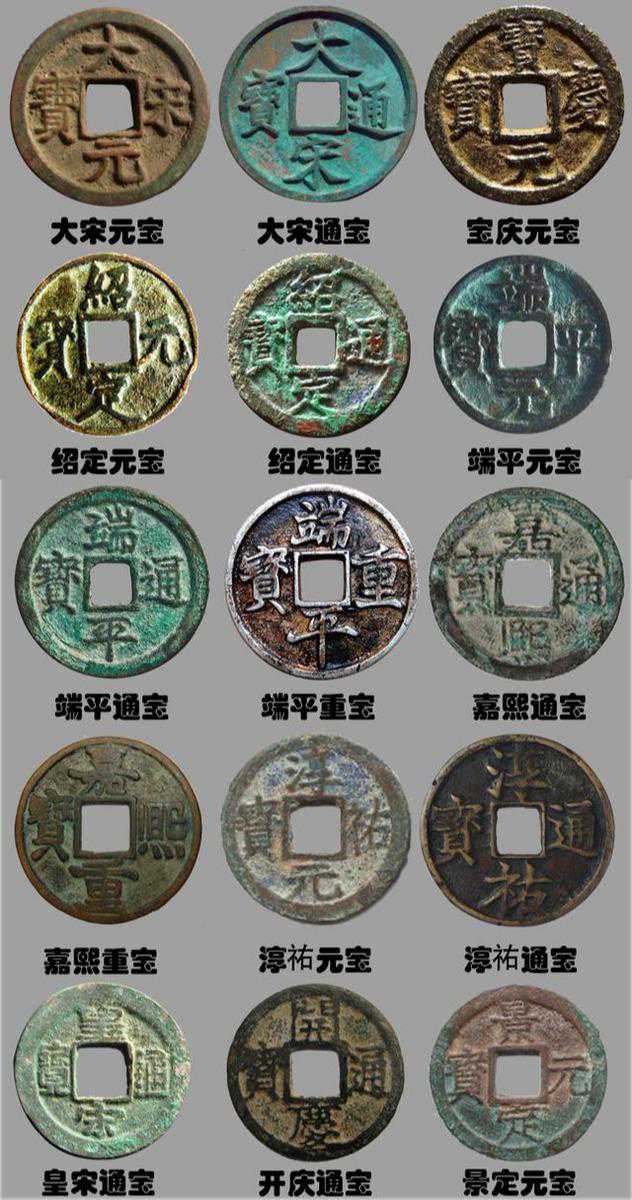 种类繁杂的宋朝金属钱币宋朝的钱币种类多得让人头昏脑胀,因为这个朝代几乎每换一个年号都要发行新的钱币,很多钱币又按照钱文字体、背文、材质、型号可分为多种,加起来能让人崩溃,估算仅北宋就近300种。