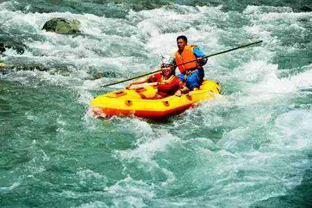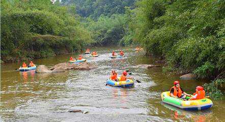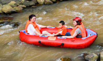 漂流全长13.8公里,漂流时间3小时左右,漂流用艇为双人橡皮艇,漂流两岸风光秀丽、峡谷幽深、青山滴翠、33个急流险滩,滩长浪急、惊险浪漫。