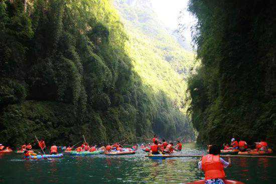 顺流直下,两岸峡谷风光如诗如画,使人置身于“人随山水转,心往画中游”的境地。