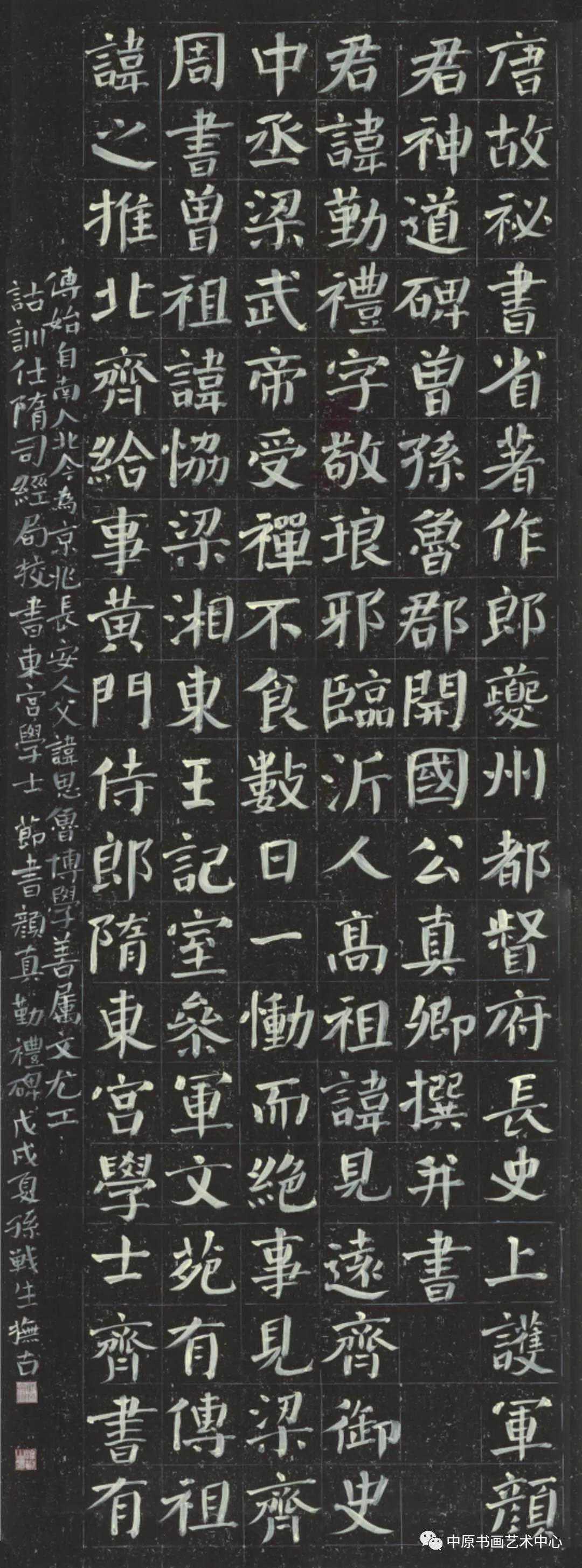 孙战生:启功先生说,“学书别有观碑法,透过刀锋看碑锋”。意思指观察碑刻书体和碑刻拓片书体,要做到不被刀锋左右,能泯其锋棱,联想到笔墨的痕迹;那么阳刻的碑拓就如同白纸上写的黑字,阴刻的碑拓如同黑纸上写的白字。在临习时,不能刻意的追求刀刻的锋棱,故做姿态模仿锋棱。