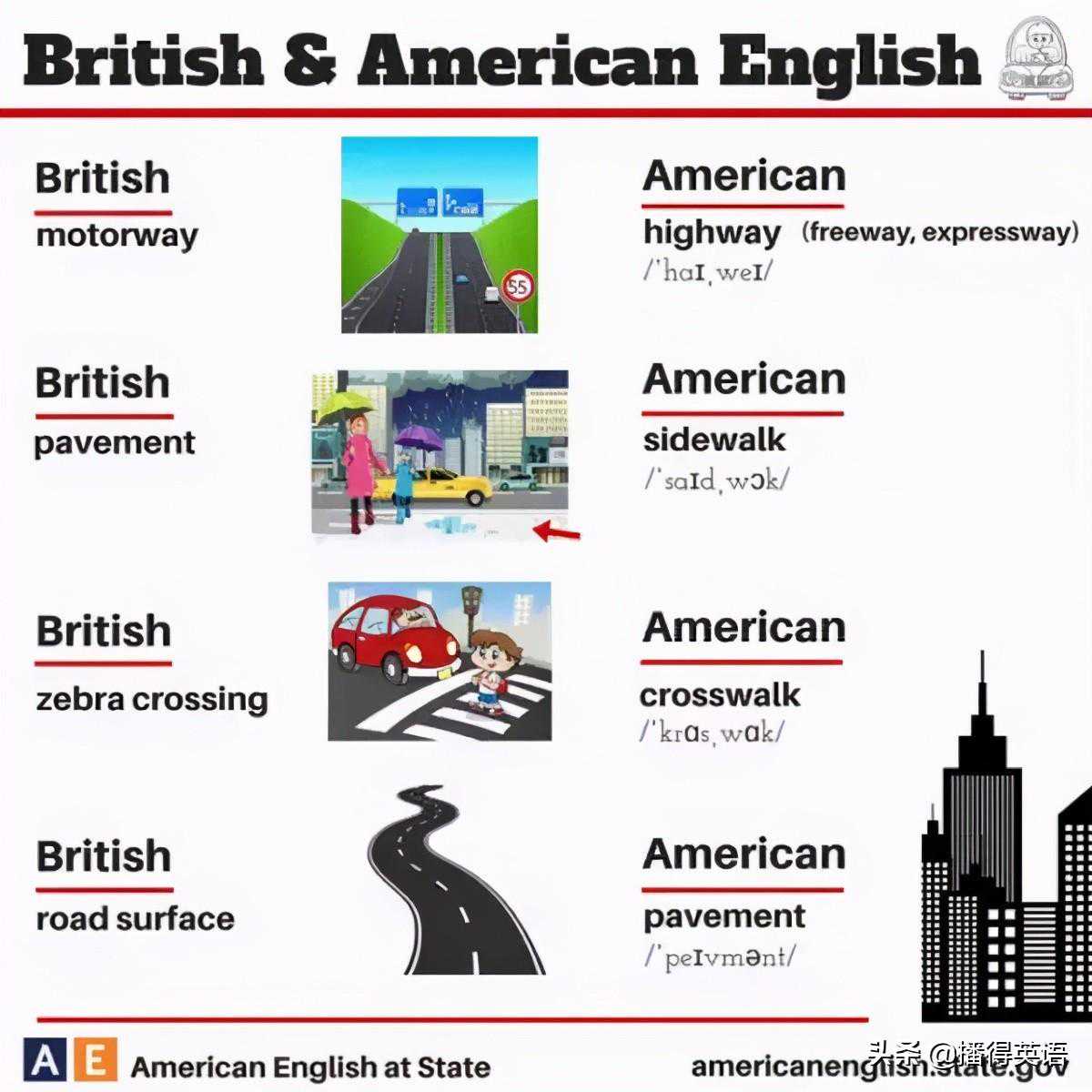 美国官方美语学习网就列出了这些让你挠头也想不出的英美差别!