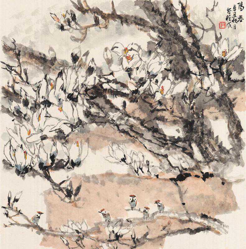 黎柱成的画具有浓烈的岭南特色,纵横均匀带来扑面而来的气息,尤其是他的传统程式和新题材的把握,处理的非常好,他的花鸟画的题材很多,包括海棠、牡丹、木棉都非常有特点。这些传统的题材又是非常难创新的题材,他用自己独特的表达方式呈现出来,是非常难得的。