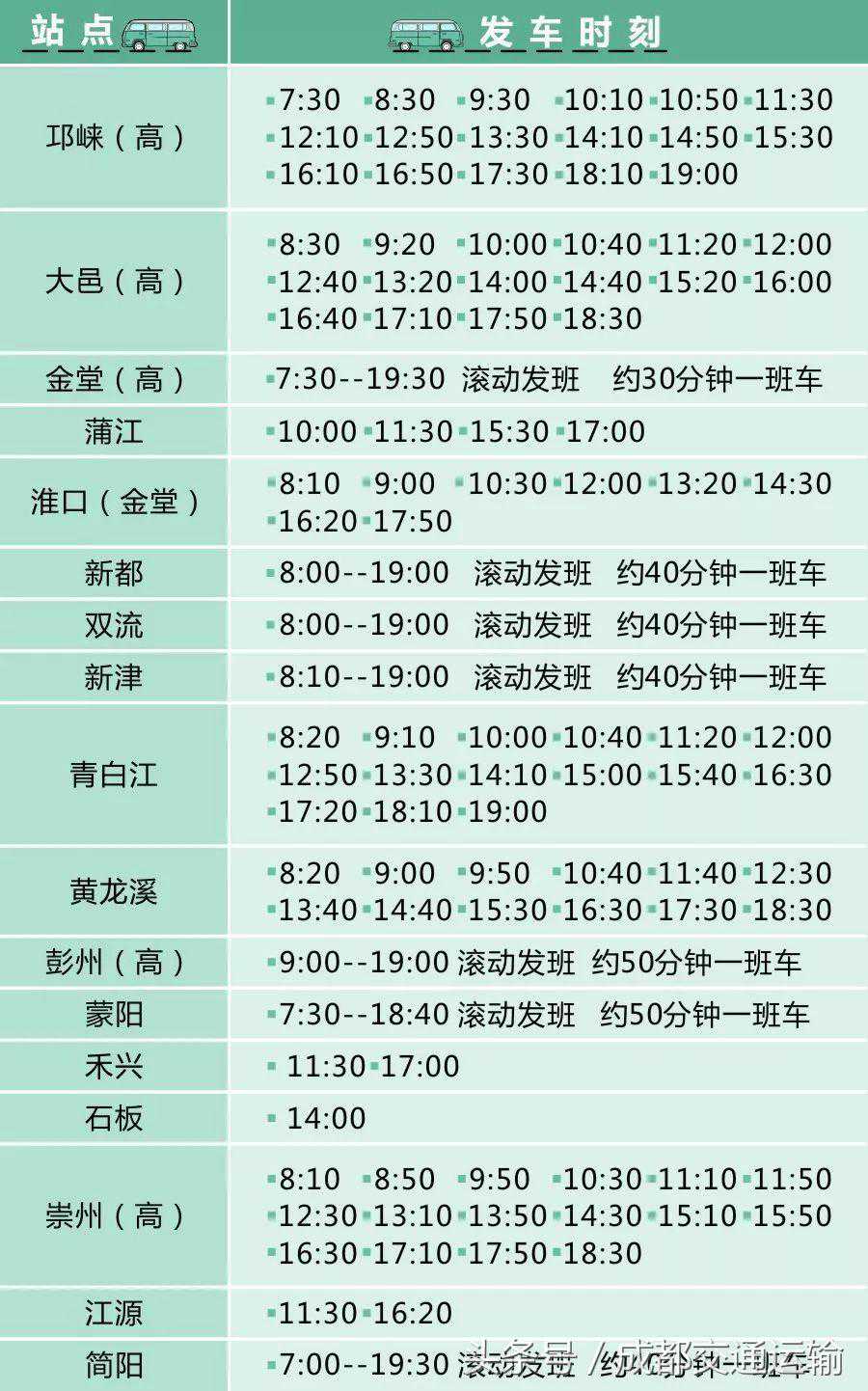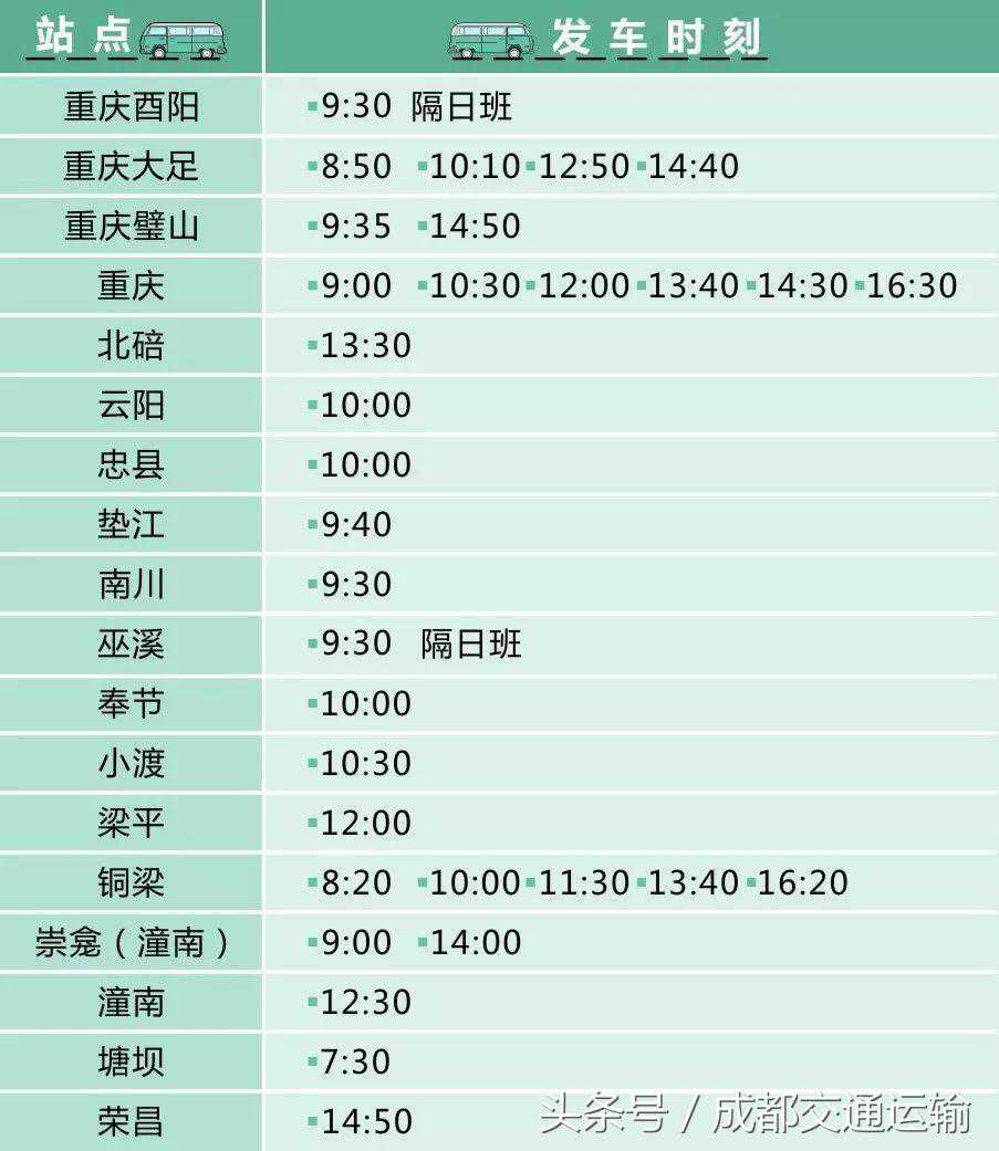 成都主城区所有超长汽车客运班线
