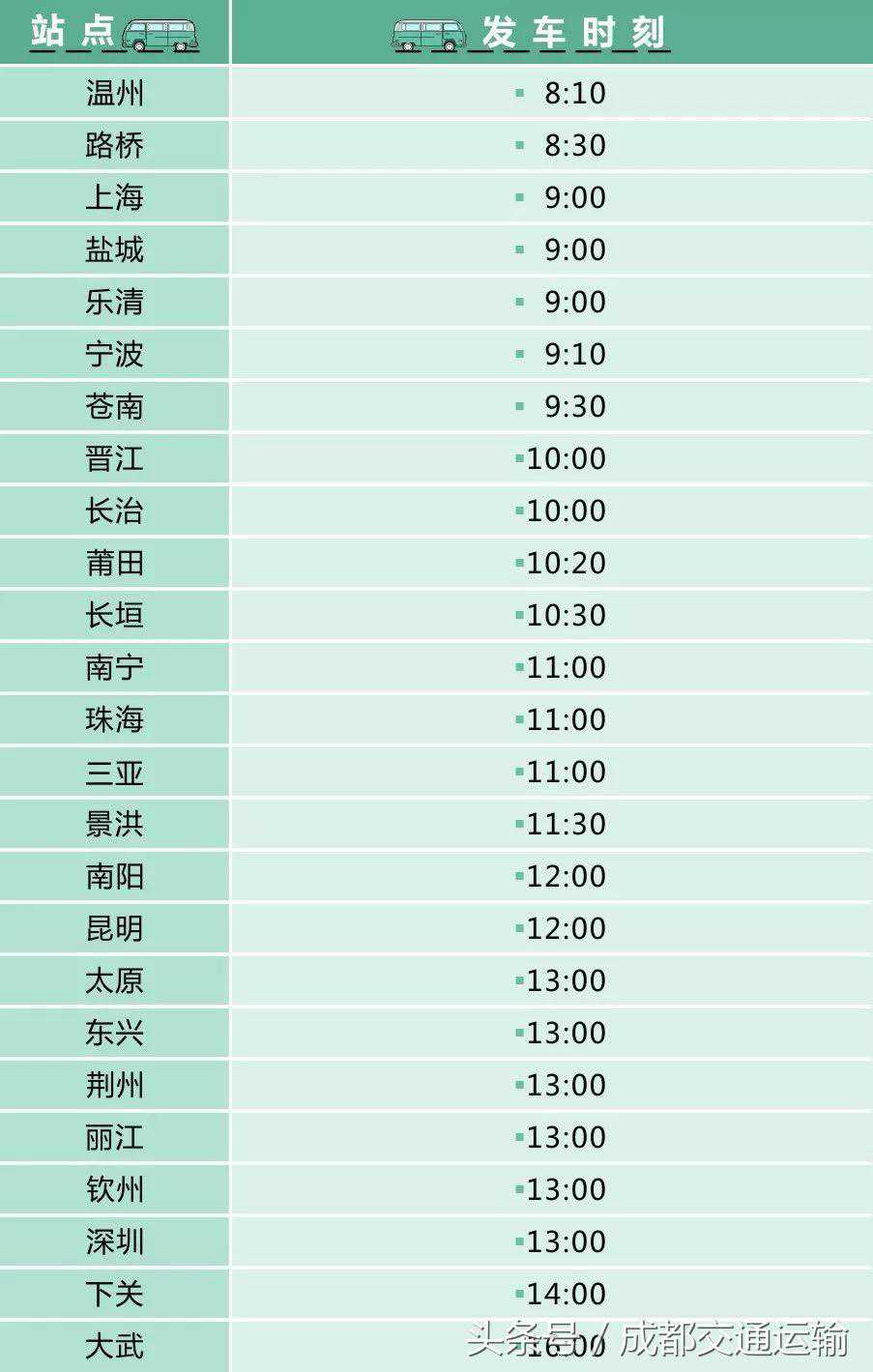 最新最全的客运班线时刻表