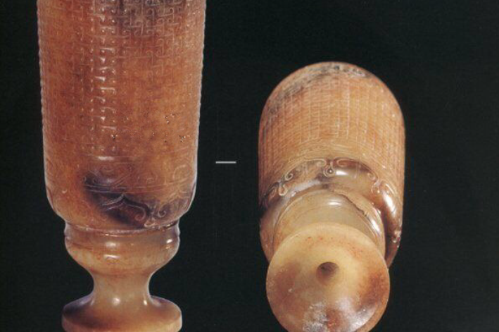 这件秦玉高足杯是迄今发现的时代较早、体量较大,集多种楚式纹样于一身,形制规整、工艺精湛的玉杯,鲜有其他玉杯能与之相媲美。