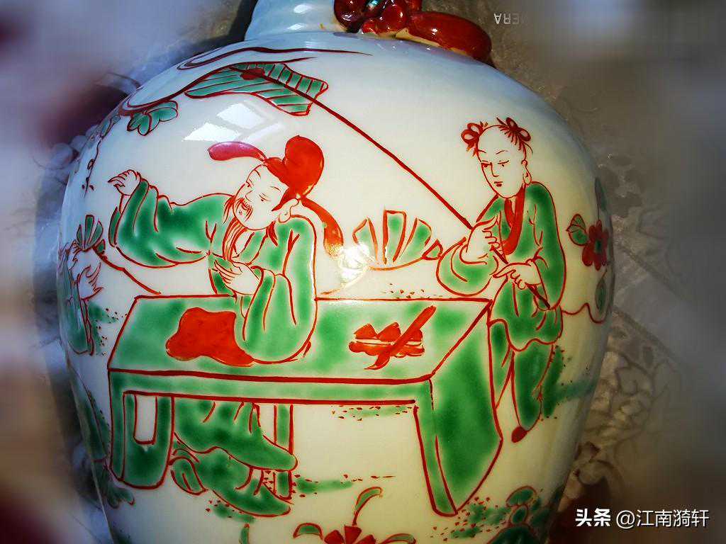 红绿彩人物纹瓶