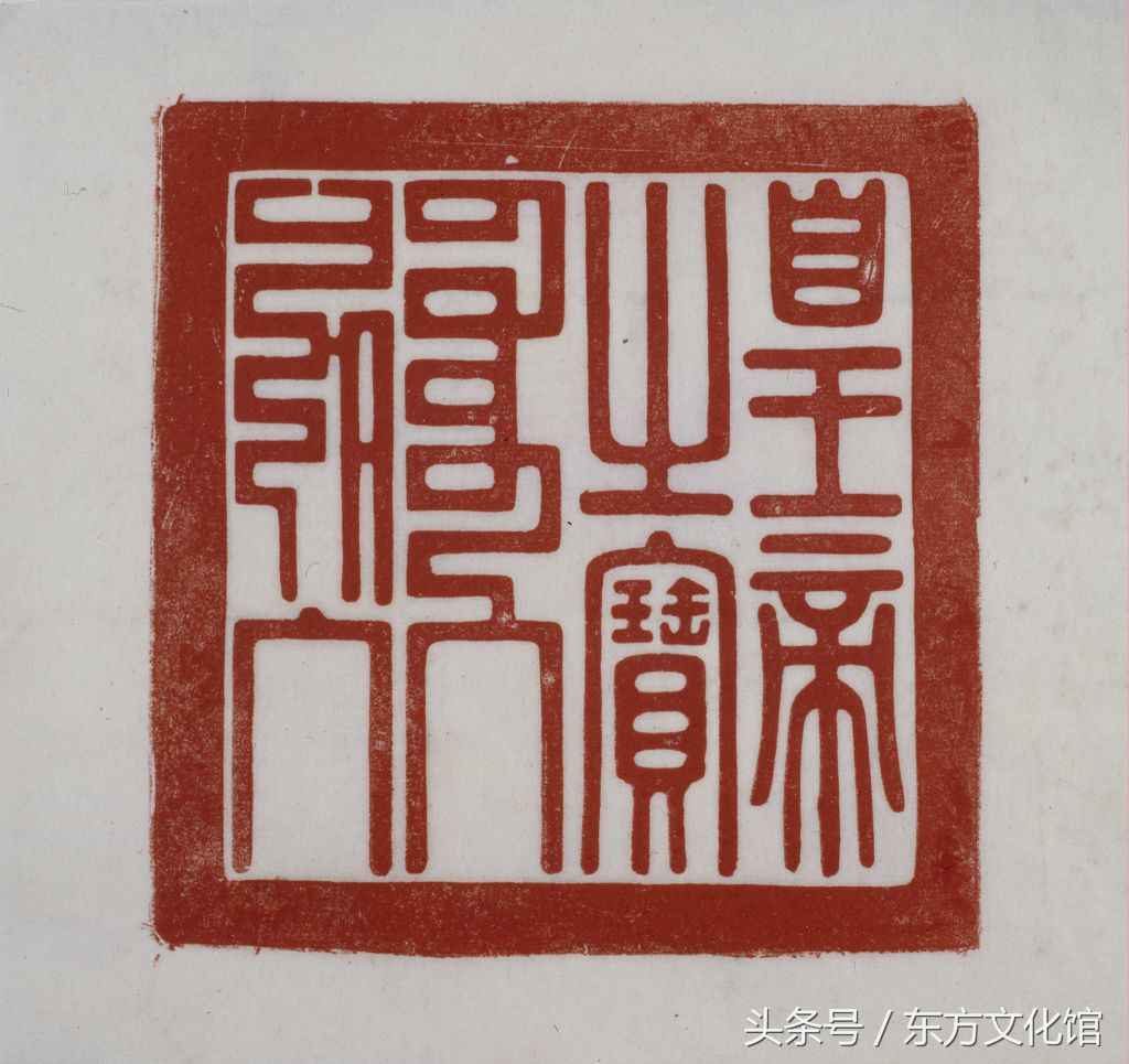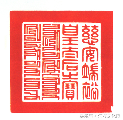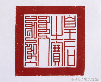 乾隆帝钦定二十五宝之一,是清代二十五宝之中唯一的一方木质宝玺。据《交泰殿宝谱》,此宝为“以肃法驾”之象征物,故凡清帝行围及驻跸圆明园或避暑山庄时,都要以这方“皇帝之宝”随驾。此外通过对清代皇帝诏令文书中宝玺使用状况的统计分析表明,二十五宝中用得最频繁、范围最广的也是这方木质“皇帝之宝”,诸如皇帝登基、皇后册命、皇帝大婚、发布殿试金榜及其他重要诏书上均钤用此宝。可以说此宝是清朝皇权的重要标志,具有极高的历史价值。