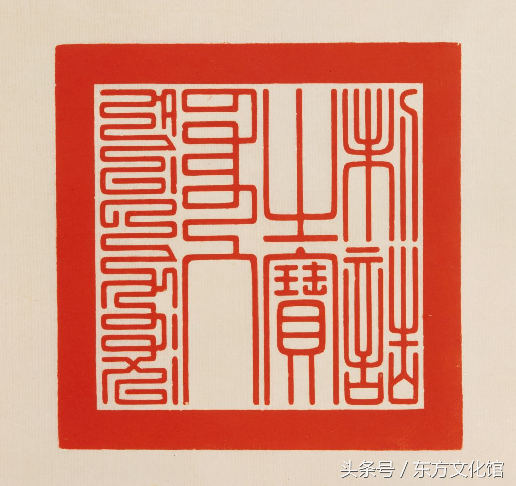《宣统宝谱》录“宣统御览之宝”共4方,印文大小尺寸不等。这是其中较大的一方,曾钤于溥仪御览过的字画上。