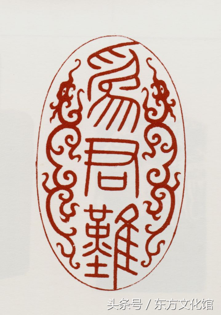 印为长方形,印文椭圆形,镌阳文“为君难”汉文篆字,双螭纽。