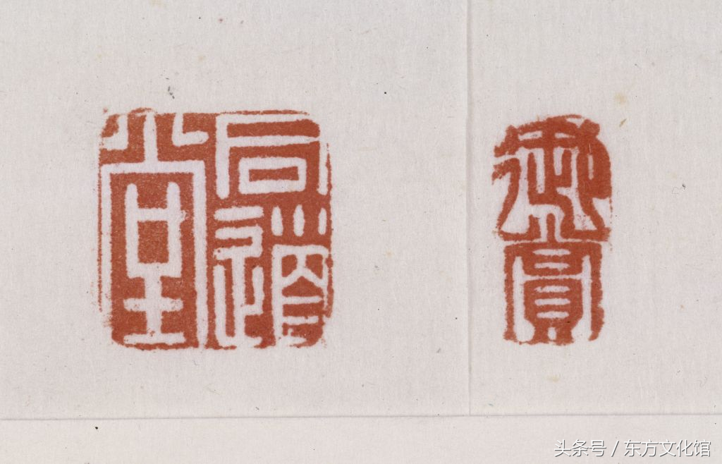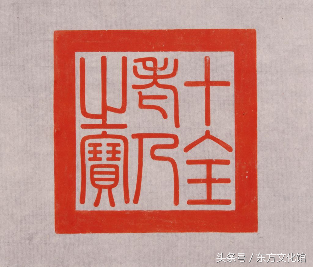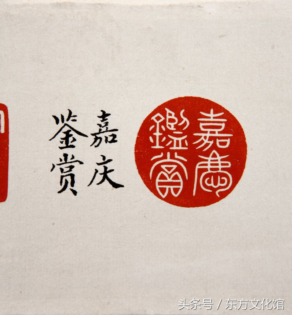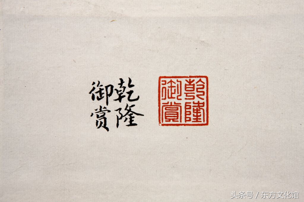 三希堂,在紫禁城内养心殿西暖阁,因这里藏有稀世之珍的王羲之《快雪时晴帖》、王献之《中秋帖》、王珣《伯远帖》而得名。从艺术鉴赏角度看,“三希堂”便成为著名艺术品的典藏地而闻名于世,与之相对应的“三希堂精鉴玺”和“宜子孙”玺便当然成为鉴定性标志。二玺主要钤盖于《石渠宝笈》、《秘殿珠林》初、续编著录过的书画作品之上,具体使用情况在《石渠宝笈》、《秘殿珠林》初、续编的“凡例”中有明确说明。如《石渠宝笈》初编,凡书画分贮乾清宫、养心殿、重华宫、御书房四处,俱各用鉴藏玺以别之,又“石渠宝笈”、“乾隆御览之宝”二玺,册、卷、轴皆同。上等者则盖以“乾隆鉴赏”、“三希堂精鉴玺”、“宜子孙”三玺。而《石渠宝笈》、《秘殿珠林》续编入选者,则钤用“乾隆御览之宝”、“乾隆鉴赏”、“三希堂精鉴玺”、“宜子孙”、“秘殿珠林”或“石渠宝笈”、“秘殿新编”或“珠林重定”、“石渠宝鉴”或“宝笈重编”。而这两方玺在钤盖时的位置也基本固定,一般都在作品的右下方,且“三希堂精鉴玺”在上,“宜子孙”玺在下。