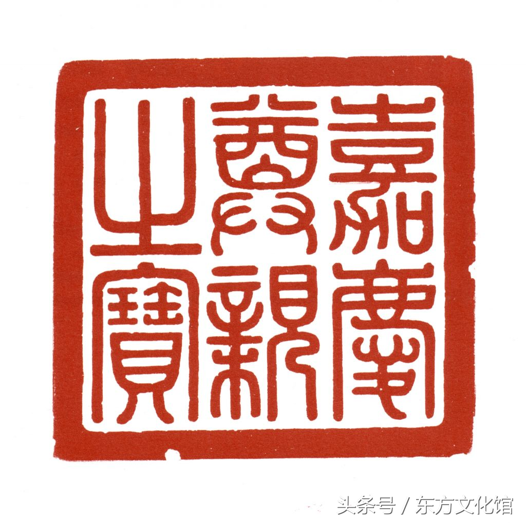 “尊亲之宝”一般在新皇帝即位不久后制作,为上尊谥或徽号而用。此方“嘉庆尊亲之宝”在嘉庆初年的乾隆帝裕陵的神道碑上已经使用,是嘉庆帝宝玺中制作较早的一方。