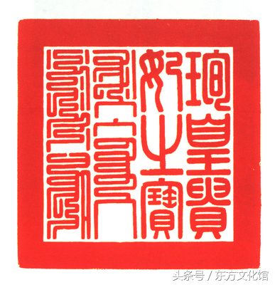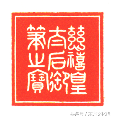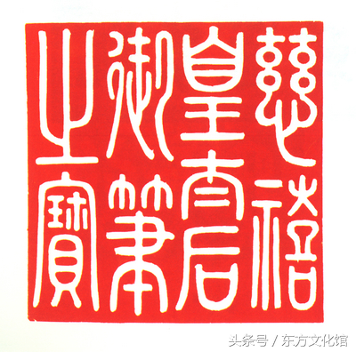 皇后之宝,通高10cm,纽高6cm,印面14×14cm,重1800g。