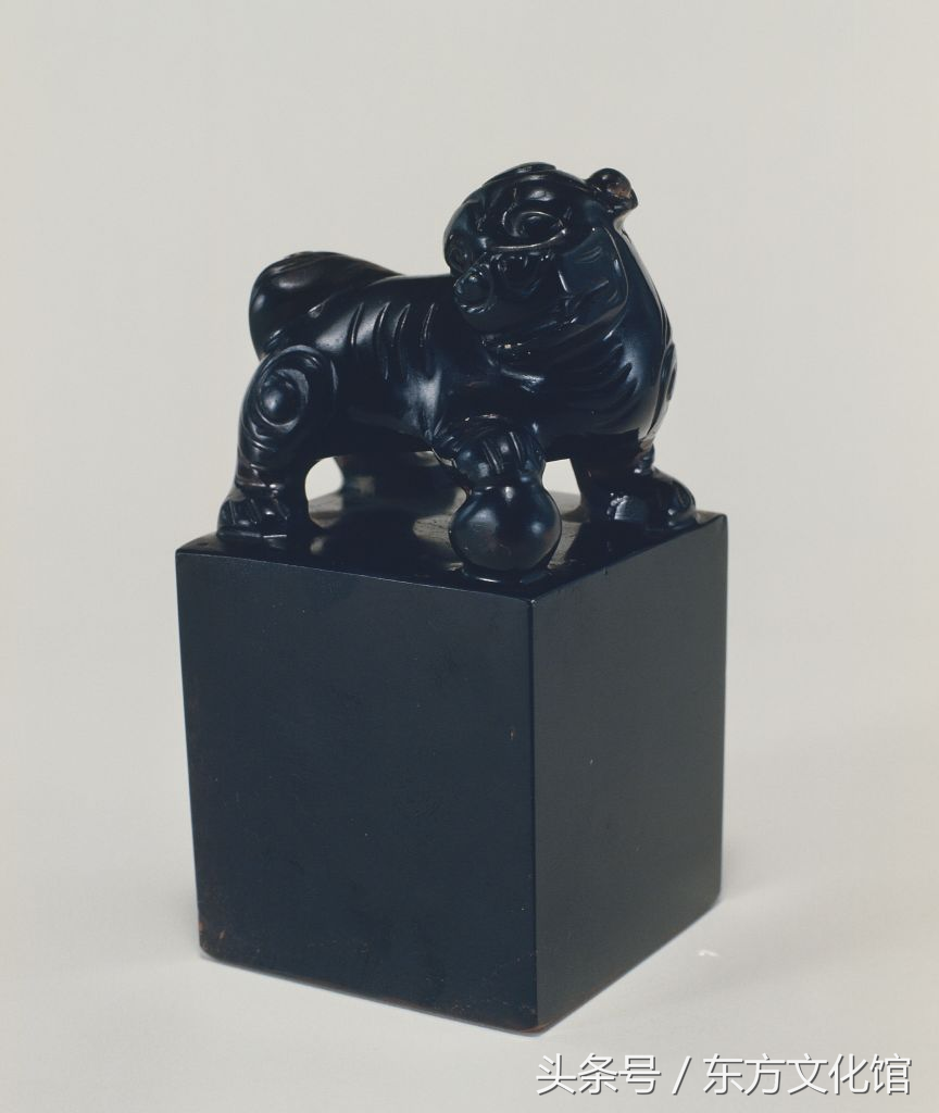 “咸丰之宝”,清咸丰,墨晶质,狮纽方形玺,汉文篆书。面6.2cm见方,通高12.3cm,纽高5.7cm。