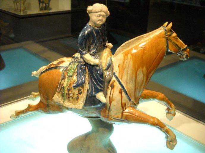 唐代三彩釉骑马陶俑