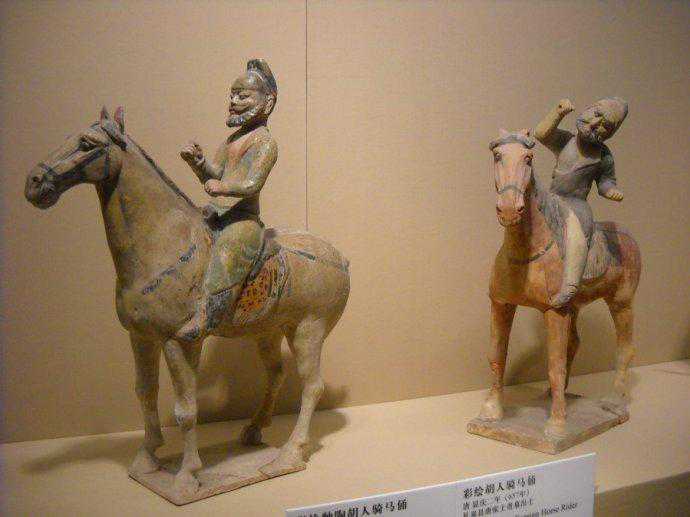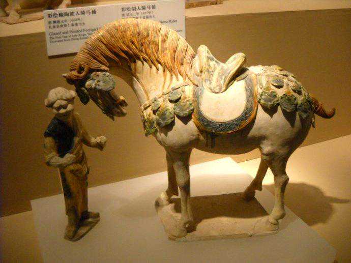 图中出現陶马及牵马俑人,皆是往來於西域等西方客商和流寓長安、洛陽等城市經商的人。證明了唐代與西方民族友好往來的密切程度。