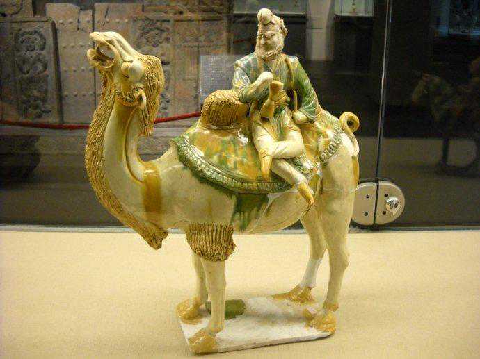 唐代三彩釉胡人骑骆驼陶俑