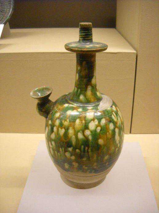 唐代三彩釉陶注子唐代绞胎釉三足陶罐