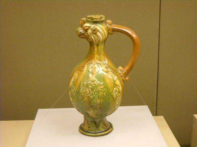 唐代三彩釉凤首陶壶