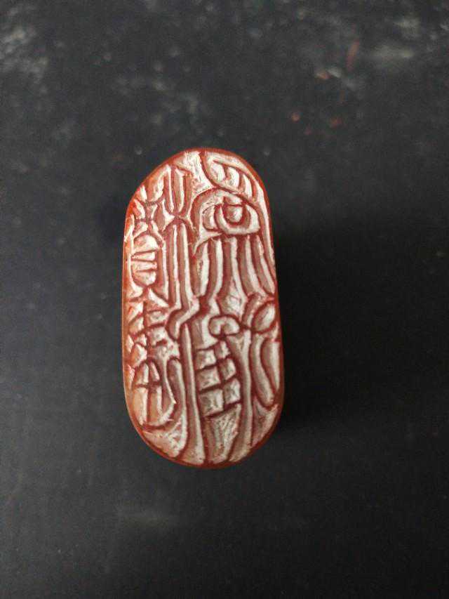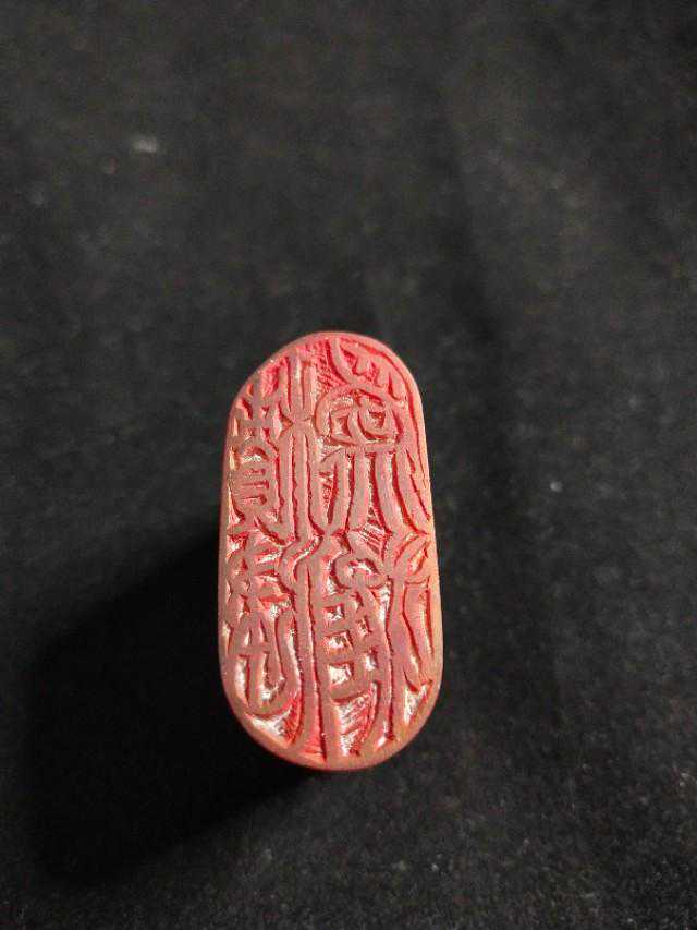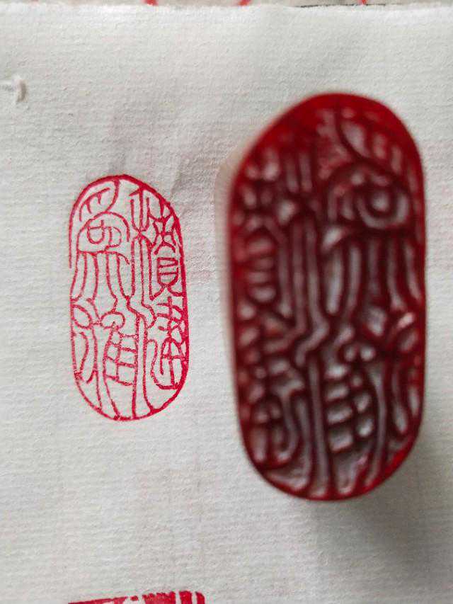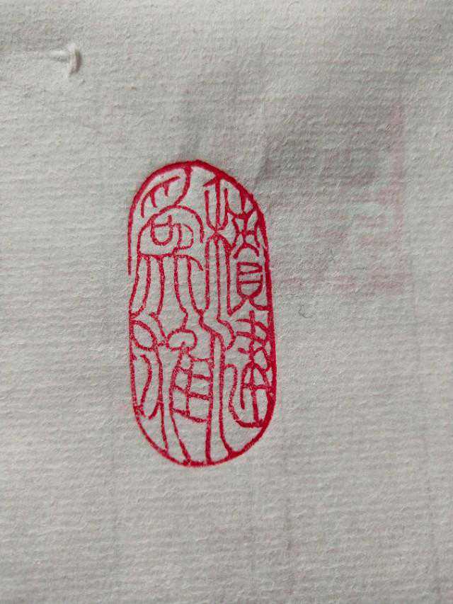 初步刻好后,沾上印泥,初看效果,看一下还有那些不太舒服的地方,再次进行修改,往往初稿与实际想象有点出入,当然也有比较好的意外,印章属于反转效果艺术,有时候就那么一点变化就美不胜收。