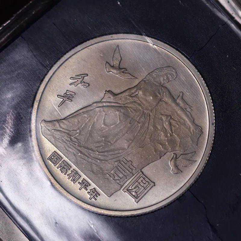 和平年纪念币1986年的和平年纪念币,币面主景是和平雕像,由少女、石头和白鸽组成。