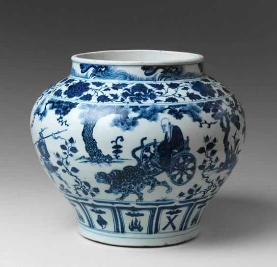 还将中国传统文化中的历史典故、松石山水、飞禽鱼虫也成为青花瓷描绘的对象,让中国故事随着青花瓷的波斯人的贸易传遍了世界。▲元代鬼谷子下山青花大罐