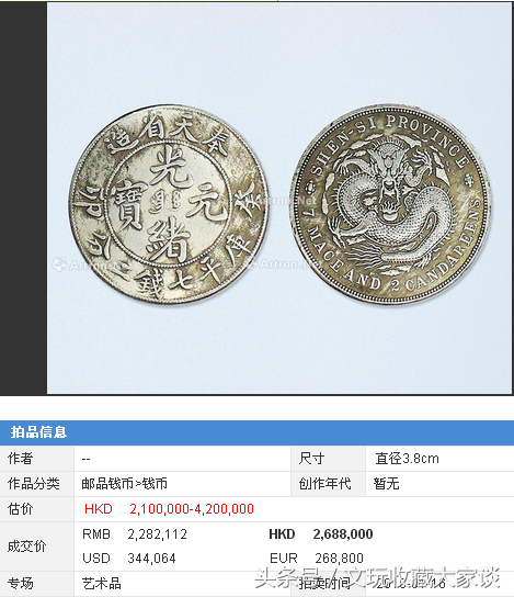 奉天省造光绪元宝为四天王之一,也是大十珍之一。市场价格高不可攀,有古钱币的藏友们可以注意,相关的古钱币出手要谨慎。