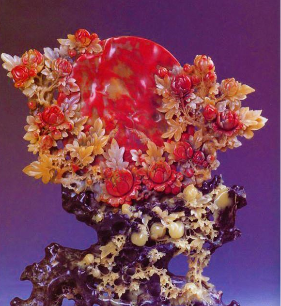 3、“地”:“地”的质量由其颜色、透明度、光泽和硬度四个要素决定。要求“地”的颜色深沉而淡雅,并且要求“地”半透明,呈强蜡状光泽,硬度小。