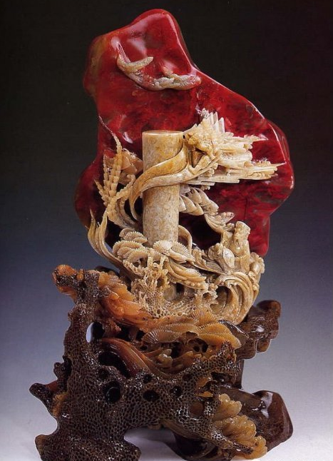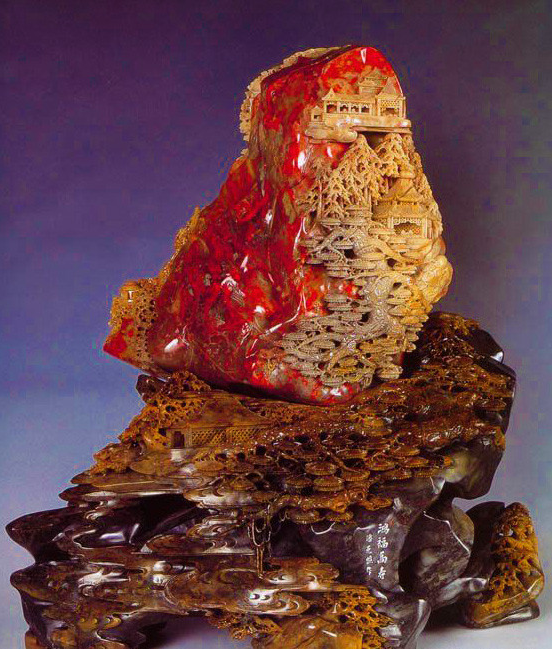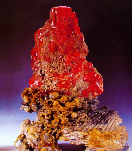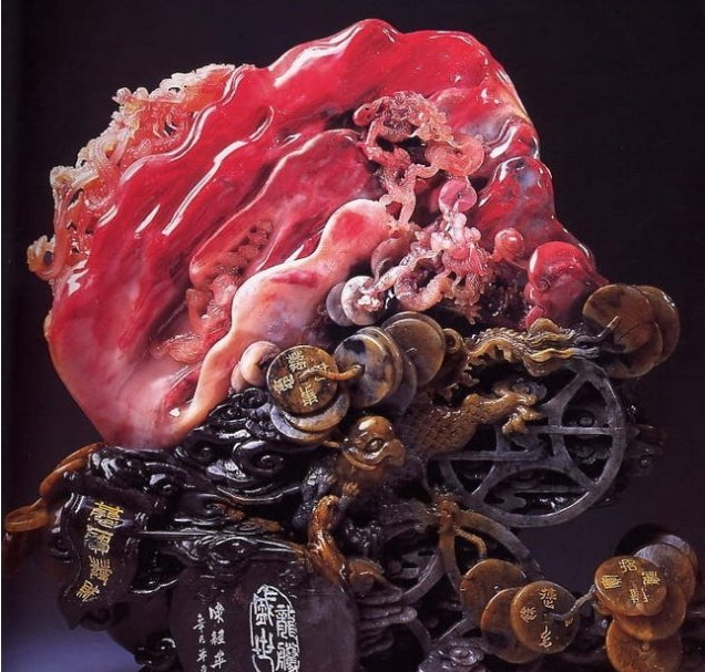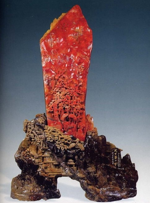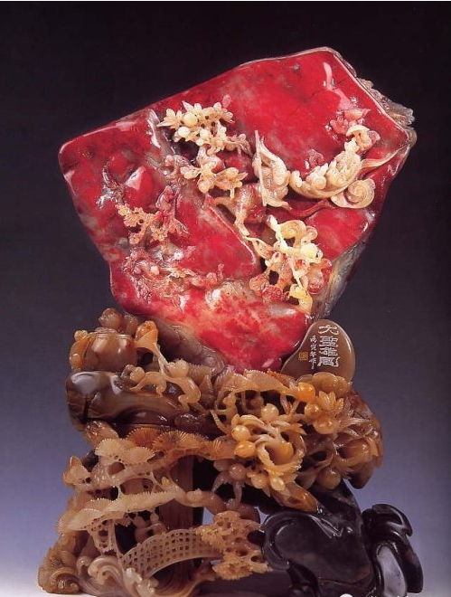 在早期,古代文人雅士及官僚就采用鸡血石制作印章,是极富盛名的章料奇石。
