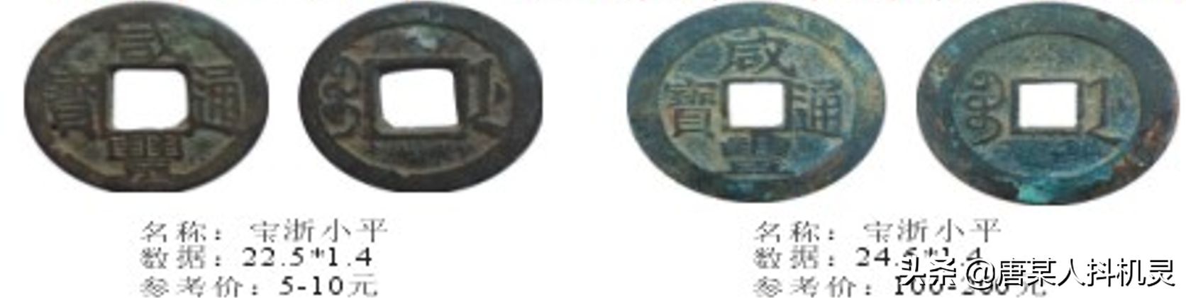 小平,咸丰通宝宝浙小平常见22mm尺寸,24.5mm以上尺寸少见,有26mm以上尺寸的布颁样极为少见。