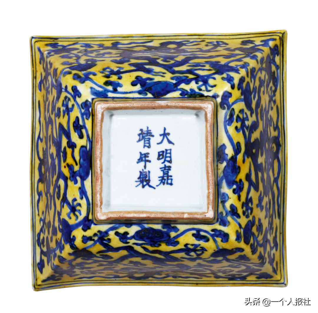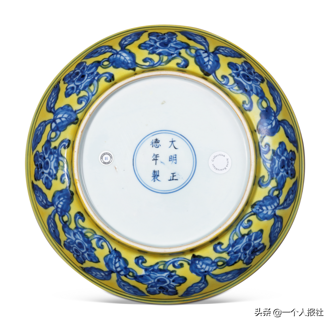 明正德黄地青花折枝花盘
