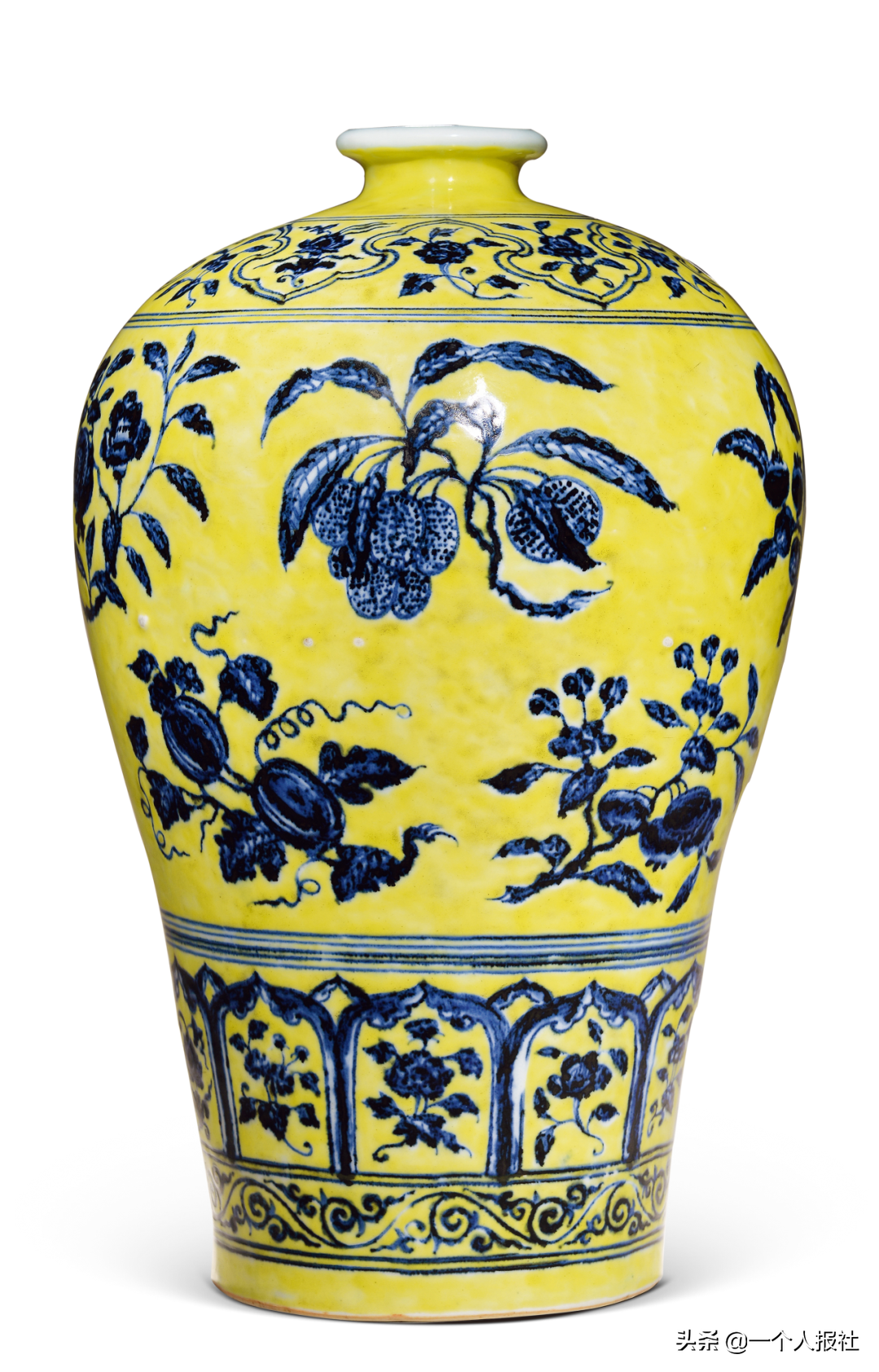 右图:明永乐青花如意垂肩折枝花果纹梅瓶